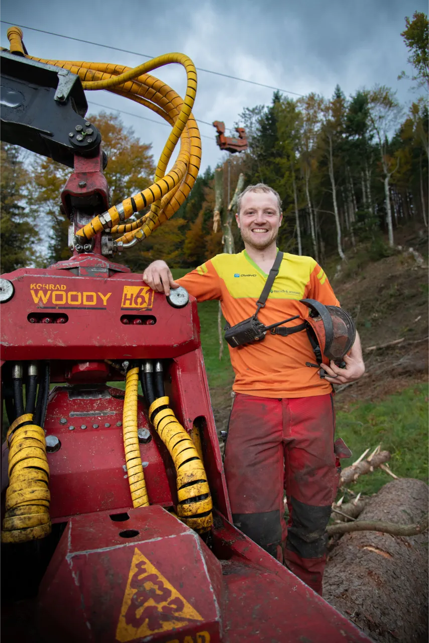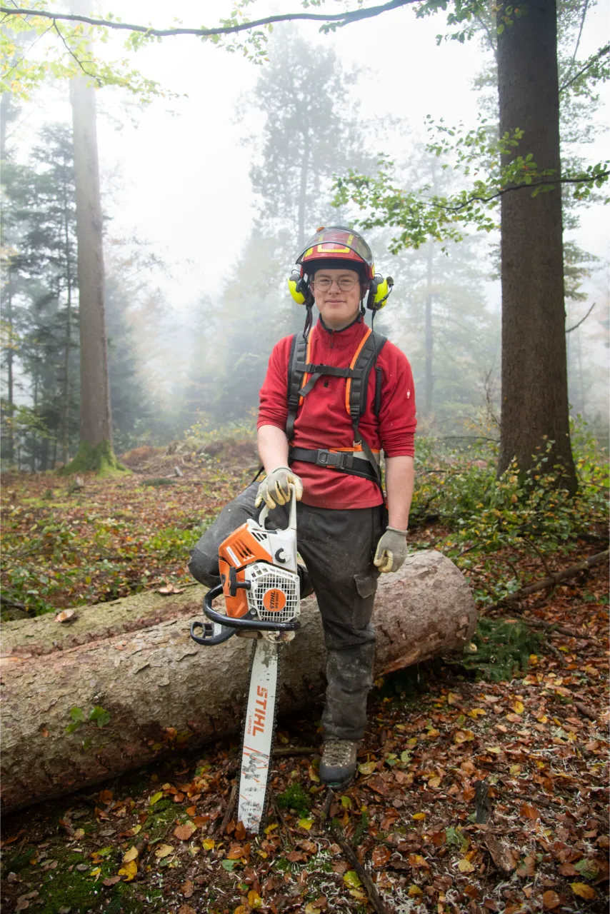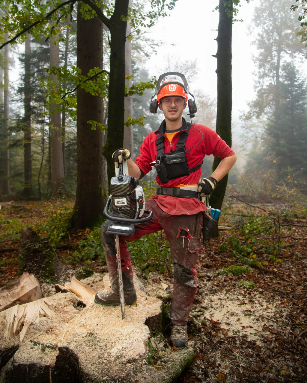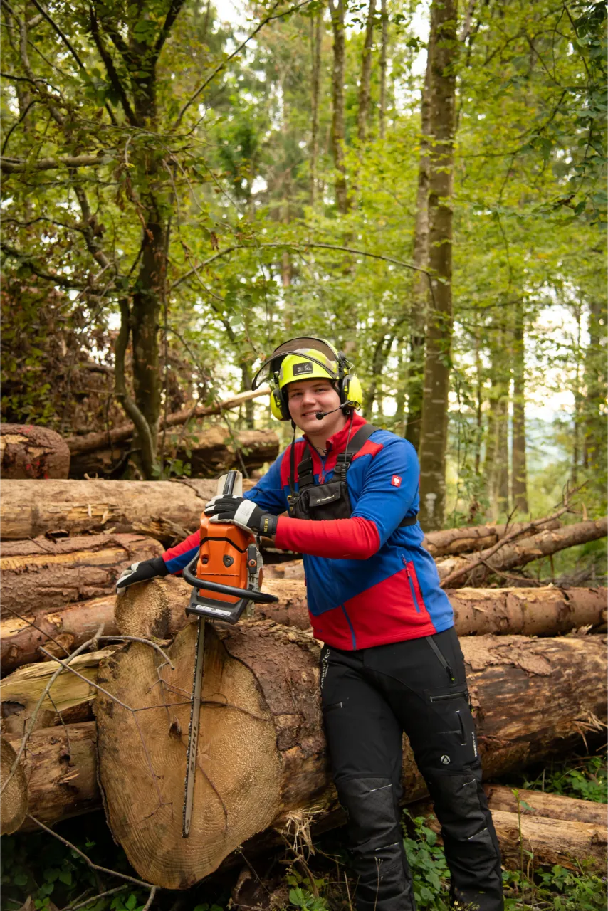 Il travaille depuis deux ans chez Geissmann Forst AG. Il a suivi une formation continue en tant que formateur et commencera bientôt l’école de contremaître. Il apprécie de travailler dehors par tous les temps. Ce qui le séduit particulièrement, c’est la récolte du bois pour l’entreprise et la collaboration avec les machines. Il aime repartir chaque matin dans la forêt pour faire ce qu’il aime. Il referait sans hésiter la formation de forestier-bûcheron.