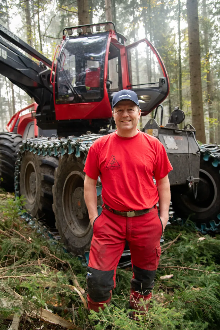 Il travaille depuis 16 ans chez Holztrans AG. Il apprécie de travailler de manière efficace, d’avoir des voies décisionnelles courtes et de découvrir différentes facettes de la forêt. Une équipe dynamique et un bon climat de travail en font également partie, et Holztrans AG lui offre tout cela. Il referait sans hésiter son apprentissage de forestier-bûcheron.