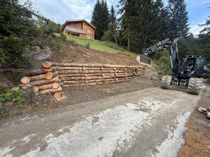 La construction forestière englobe généralement tous les travaux de terrain en forêt. Les forestiers utilisent volontiers l'abondant matériau de construction qu'est le bois rond de manière à ce que l'intervention ne modifie guère la nature.